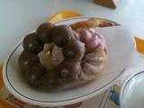 で、食べてみると想像してた以上にふわふわのもちもちで、これは人気あるのもわかるなぁ。でもショコラとしてはどうなんだろう。コーティングの甘さが強くてココアの風味をあまり感じなかったような・・・。あと昼食に食べたのは失敗だった。甘い上に腹に溜まらない罠。次食べるときはデザートにしよう。
